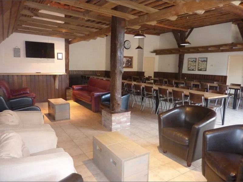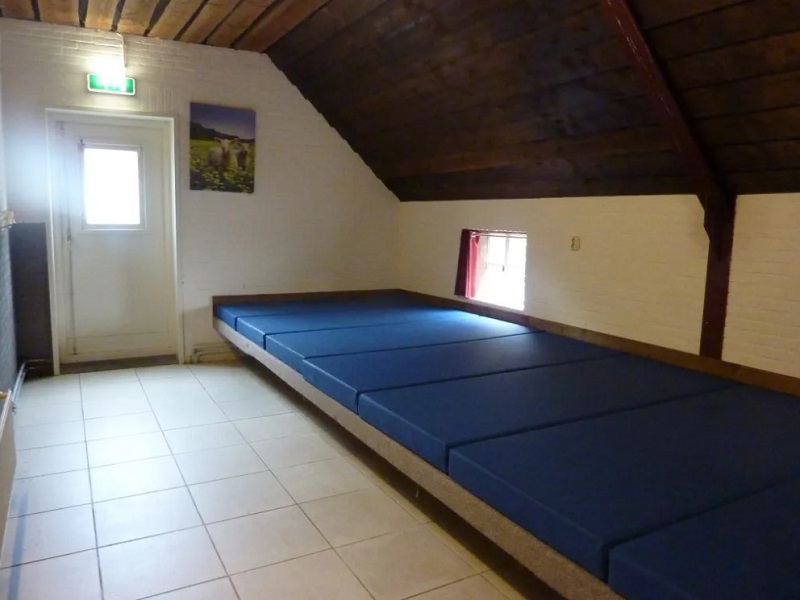 De groepsaccommodatie heeft 4 ruime slaapzalen, 4 kleine slaapkamers en een grote gezellige gemeenschappelijke ruimte. ( De slaapzalen/keuken zijn apart van de recreatiezaal.) Een sportveld en een gezellig erf of binnenplaats, vanwaar je zo het bos in loopt.